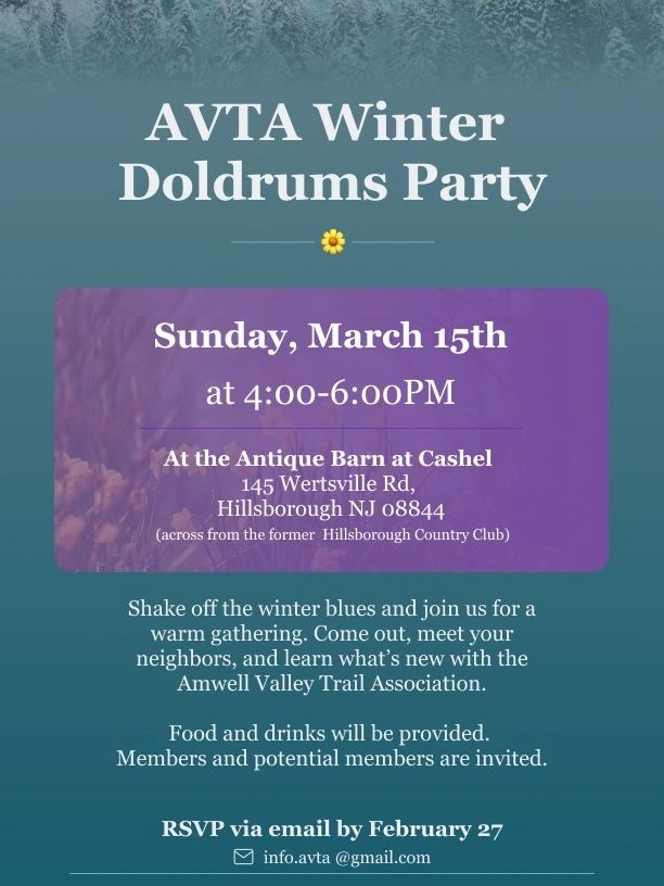 Thanks to the generosity of the new owner (Andrew E.) of what was previously referred to as "Bryce Jr’s”, The trail that crosses Wertsville Rd @ Pam Carter’s and follows North Hill Rd. to Gael Gardner’s is now open. The AVTA will work with Andrew to figure out other trails this summer.